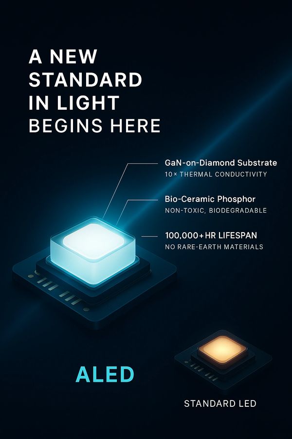 Through our groundbreaking GaN-on-Diamond LED technology, we aim to deliver lighting solutions that are brighter, more efficient, and longer-lasting than anything available today — while reducing environmental impact at every stage of the product lifecycle.